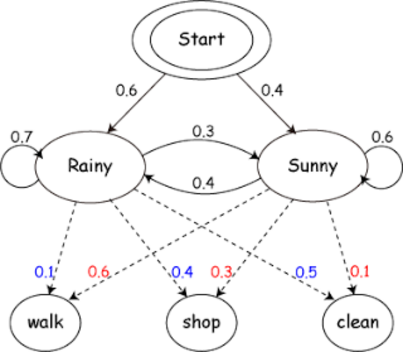 同じマルコフ過程でも、隠れマルコフモデルより単純なマルコフ連鎖では、状態は直接観測可能であり、そのため、状態の遷移確率のみがパラメータである。一方、隠れマルコフモデルにおいては、状態は直接観測されず、出力(事象)のみが観測される。ただしこの出力は、モデルの状態による確率分布である。従って、ある隠れマルコフモデルによって生成された出力の系列は、内部の状態の系列に関する何らかの情報を与えるものとなる。「隠れ」という語はモデルが遷移した状態系列が外部から直接観測されないことを指しており、モデルのパラメータについてのものではない。たとえパラメータが既知であっても隠れマルコフモデルと呼ばれる。隠れマルコフモデルはごく単純な動的ベイジアンネットワークとして表現することができる。