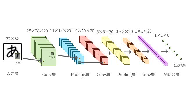 Convolutional Neural Networkは略してCNNと呼ばれる。CNNは一般的な順伝播型のニューラルネットワークとは違い、全結合層だけでなく畳み込み層(Convolution Layer)とプーリング層(Pooling Layer)から構成されるニューラルネットワークのことだ。