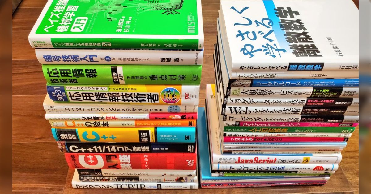 現職のGoogleのエンジニアの半年の勉強量がこちら – Togetter AI X Facebook はてブ LINE コピー2020.01.01 現職のGoogleのエンジニアの半年の勉強量がこちら今年の下半期に勉強した本はだいたいこんな感じ! 9月末に引っ越しで本をかなり処分したので、本当はもっとあったけど😄 来年も週1冊くらいのペースでどんどん新しい知識を得ていきたいな😊 すごい。こんだけ勉強すると以前のを忘れたりしないのでしょう...