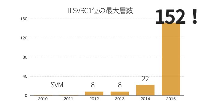 ImageNet2015で圧勝したResidual Network(ResNet)。層間で残差を足し合わせるというシンプルなアイデアでCNNは層を格段に深くして飛躍的に性能が向上した。